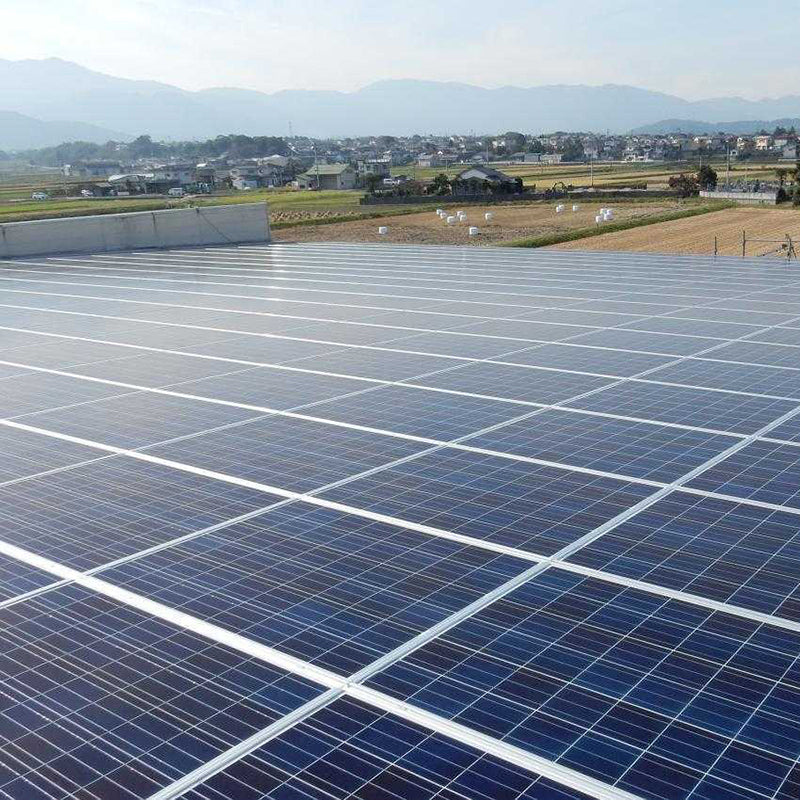 現在倉庫として利用している糸島市内にある旧工場の屋根には270枚の太陽電池モジュールを設置し、糸島工場で使われる全使用電力の約15%をまかなっています。また、工場正門にはご近所の九州大学で開発された風レンズ風車も設置されています。